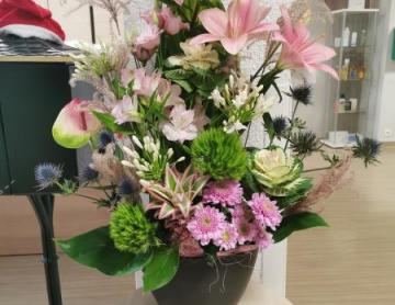 Gerberas pétillants, lys élégants, alstroemérias joyeuses, touches de vert frais et ces délicieuses oranges séchées qui annoncent doucement l’arrivée du printemps…