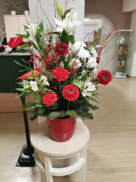 Cette composition florale aux teintes rouges et blanches apporte une touche de douceur et d’élégance à notre établissement. Symbole de chaleur, de sérénité et de convivialité, elle contribue à créer une atmosphère accueillante et apaisante pour nos résidents, leurs familles et le personnel. Les fleurs, choisies avec soin, évoquent le bien-être, le respect et l’attention que nous portons chaque jour à ceux qui vivent ici.