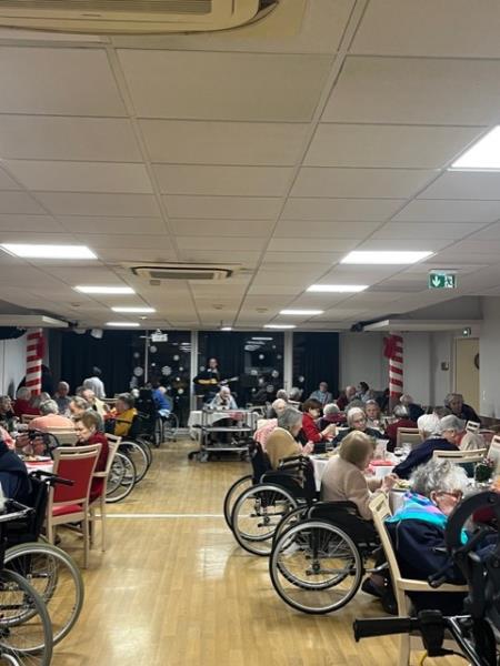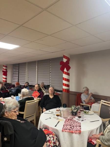 La salle de restauration, joliment décorée aux couleurs de Noël, a accueilli les résidents dans une ambiance joyeuse et conviviale. Sapin, décorations scintillantes et musique de saison ont contribué à créer un véritable esprit de fête, rappelant à chacun la magie de Noël.